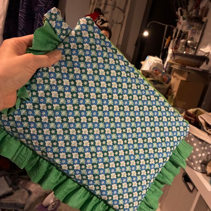 These make great gifts for all ages, from children to adults, and it’s easily customisable. You can add or leave off the ruffles, add the side tab to attach a handle, or leave it off. It’s also perfect for bits of scrap fabric left over from other projects and please feel inspired by combining different colours and prints.