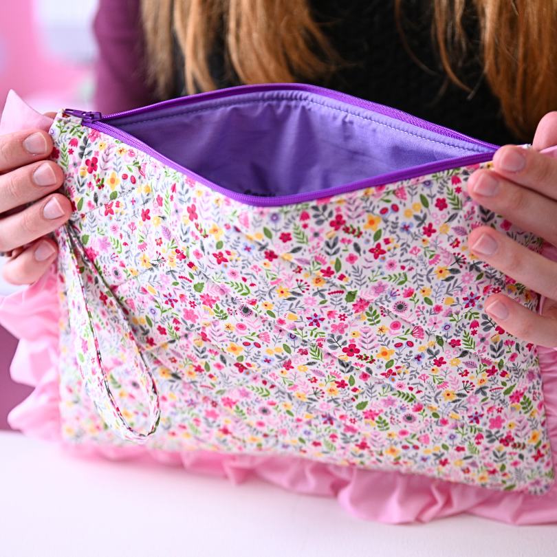 This cute pouch with optional ruffles is the perfect companion to throw in your essentials, like your mobile phone, car keys and a bank card, and head out to the shops or do the school run.